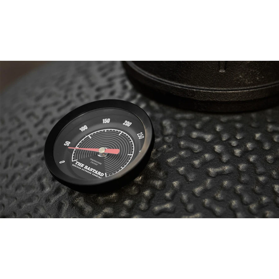 Toujours dans la lignée du “Pure Dutch Design”, le The Bastard VX Large Solo voit son esthétique repensée. Son couvercle est aplati et ses lignes plus franches. Son style industriel est renforcé par un coloris gris foncé mat, un thermomètre noir (0 à 400°C) et une surface texturée à effet brut.